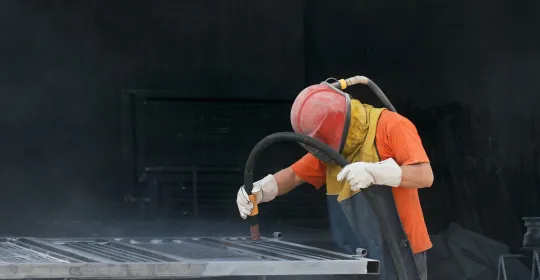 La première consiste à nettoyer et préparer l’acier par projection à haute pression d’un abrasif. C’est ce qu’on appelle aussi le grenaillage.
